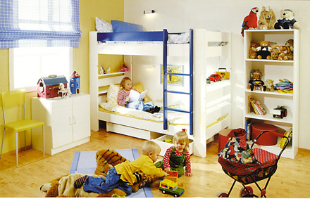Элементная двухъярусная кровать «Kid» с секцией для хранения вещей представляют собой комбинацию, позволяющую использовать площадь под кроватью для хранения вещей. Кровать удобно сочетается с другими изделиями «Kid». Если переставить бока и дно ниже, то кровать превращается в обыкновенную, но с широкими возможностями дополнительного оснащения. В целях увеличения функциональности и безопасности кровать можно доукомплектовать защитным бортом и полкой. Элементную кровать «Kid» возможно дополнять синими, голубыми или розовыми лестницами и защитными барьерами, а также розовыми или голубыми лицевыми панелями ящиков.