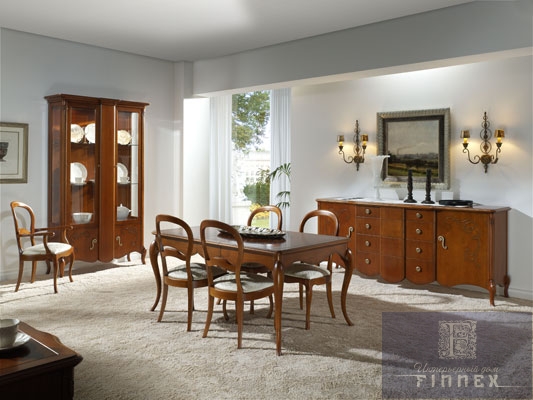 Обеденная зона Серия 78, производство испанская фабрика Lino. Выполнена из массива американской вишни. Различные варианты тонировки дерева, есть возможность комбинировать цвета покраски дерева.