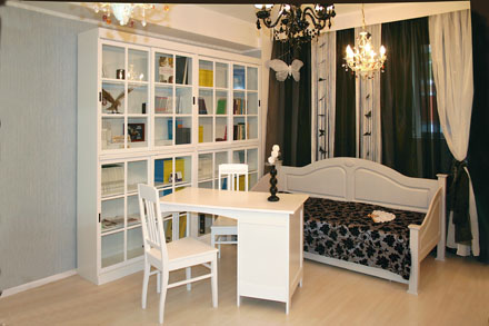 Если Ваша маленькая принцесса желает жить в изящной и одновременно удобной обстановке, мы предлагаем Вам кушетку «Romance» от компании ASKO, которая одновременно может выполнять и функцию дивана, экономя пространство детской спальни. Обстановку отлично дополнят книжные стеллажи и письменный стол «Gustav» (Niemen Tehtaat OY).